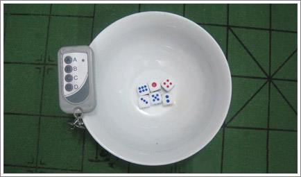遥控板:桌子里面要装一块遥控板,遥控板的规格有大、中、小几种,控制力度有普通型和加强型的,也可以根据客户要求订做,口袋里面放一个遥控器,色子不管打在桌上还是打在碗里,都可以用遥控器控制点数。